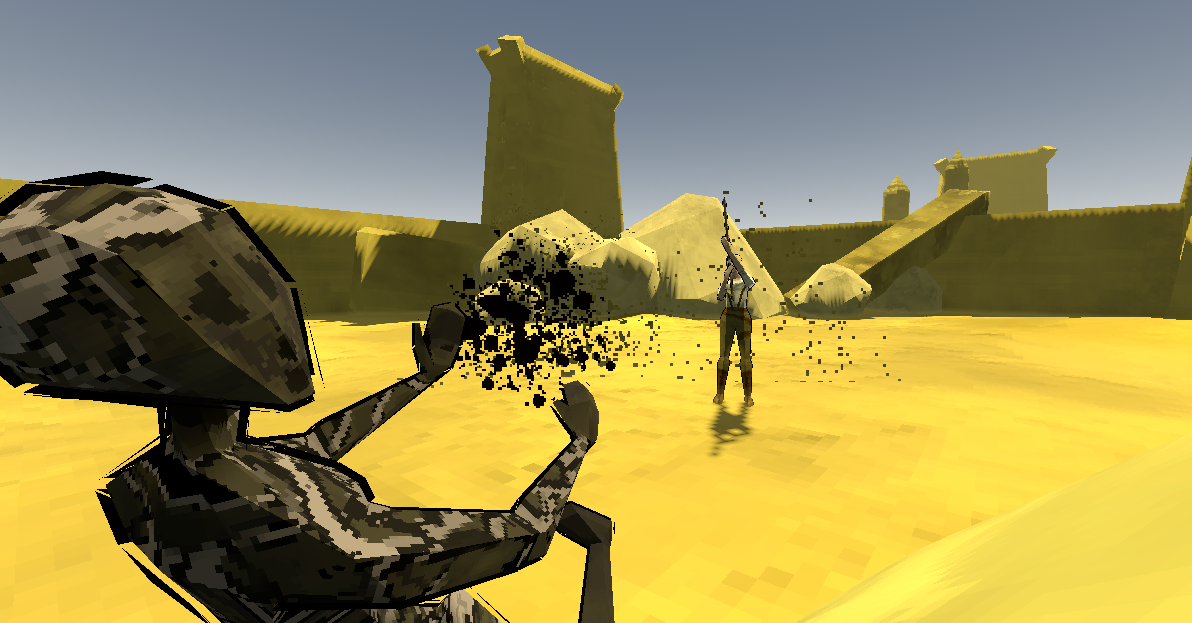 Main features are locating the artifacts using the special Ankh item which flashes when character is facing the right direction, and lever-action rifle gunplay, which i tried to make simple but satisfying.