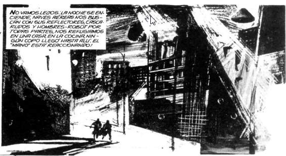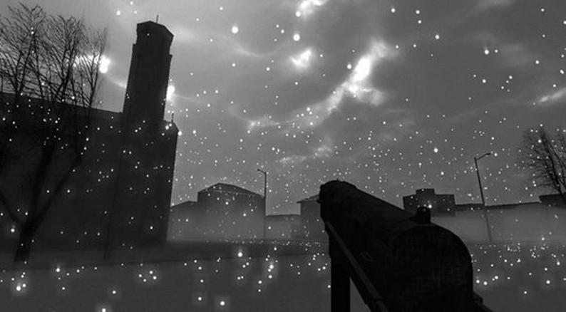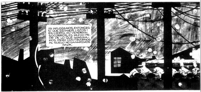 Recuerdo esta screen, estaba testeando la luminiscencia de la nieve. En el comic original están descritas así: "acunándose en el aire quieto, de lo alto caían finísimos copos; casi transparentes, emanaban una débil luz de trasmundo.