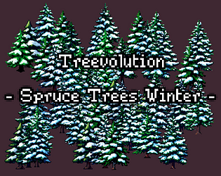 This pack includes 64x96 winter themed spruce trees with PNG files – perfect for RPGs and platformers.