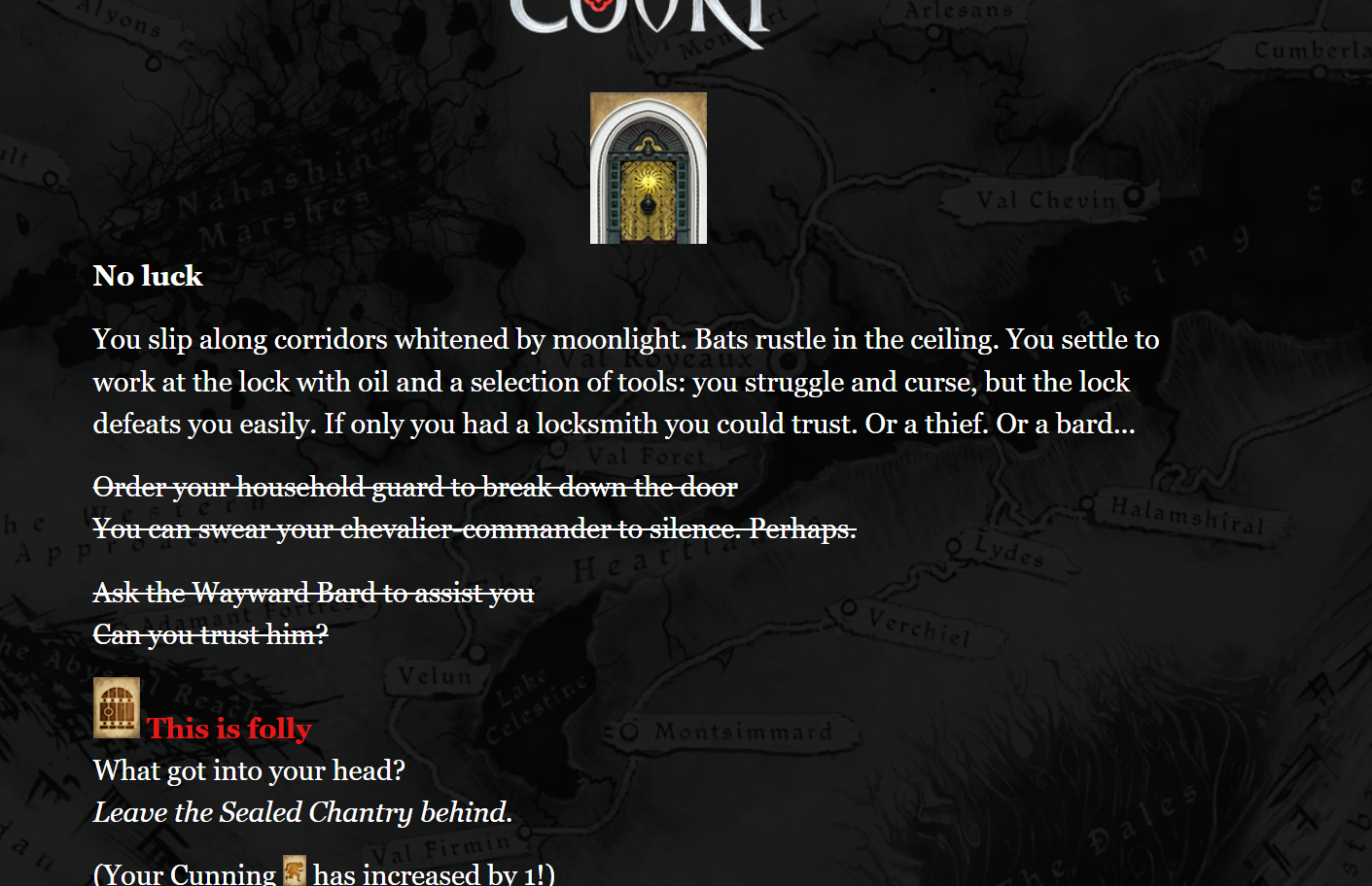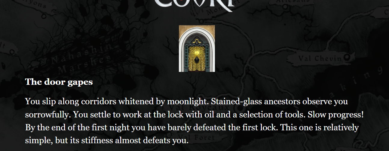 Between Failbetter’s text-based low-budget and me - who teaches History to schoolchildren for a living - spending about 130 hours on this preservation project for free, your Marquis never had a chance! lol