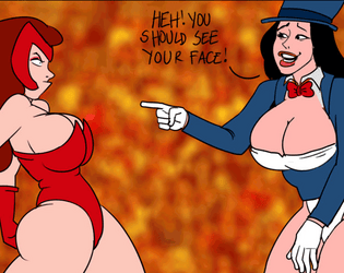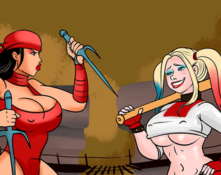 NSFW Fan-based comic of superheroines from Marvel and DC fighting in a silly way