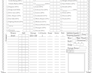Call of Cthulhu character sheet but too many weapons comments · Posted in Call of Cthulhu character sheet but too many weapons comments