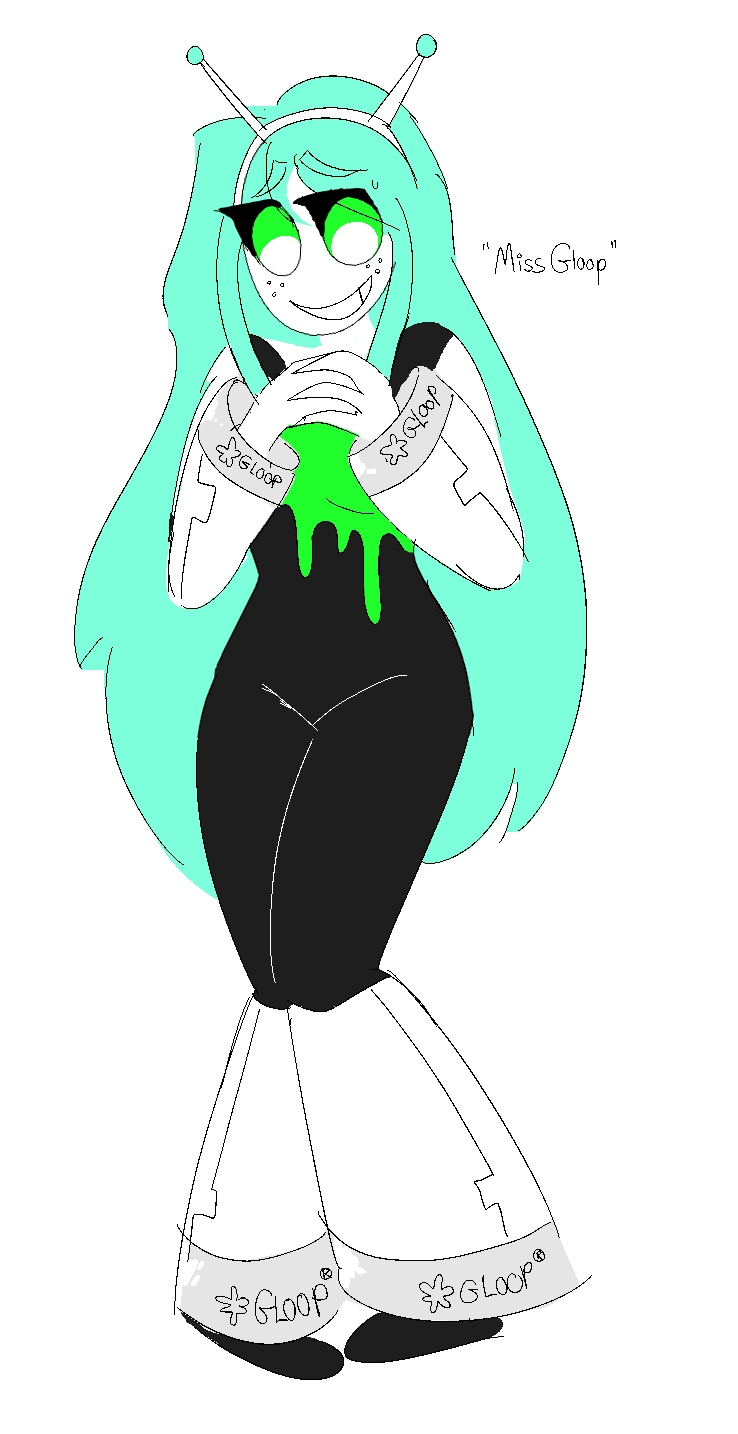 miss gloop entered a reality TV show where the reward would be to become the next “miss gloop” (representative of the corporation). she entered because it would give her the opportunity to meet the previous miss gloop in person, since she was a major fangirl. the plan was to meet the previous miss gloop then reject her new job offer and give it to the runner-up. however, she was contractually prevented from doing this.
