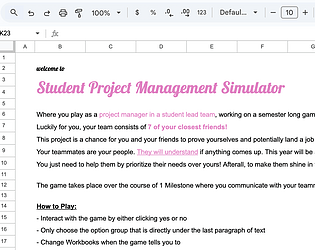 A narrative spreadsheets game about university group projects and project management