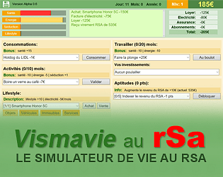 Vis ma vie au RSA est un jeu de survie dans lequel vous incarnez un personnage qui à droit au revenu de solidarité active (rsa)