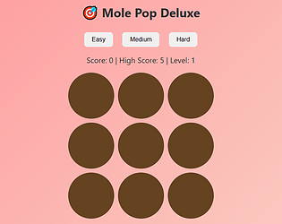 A fast-paced Whack-a-Mole browser game with multiple difficulties.