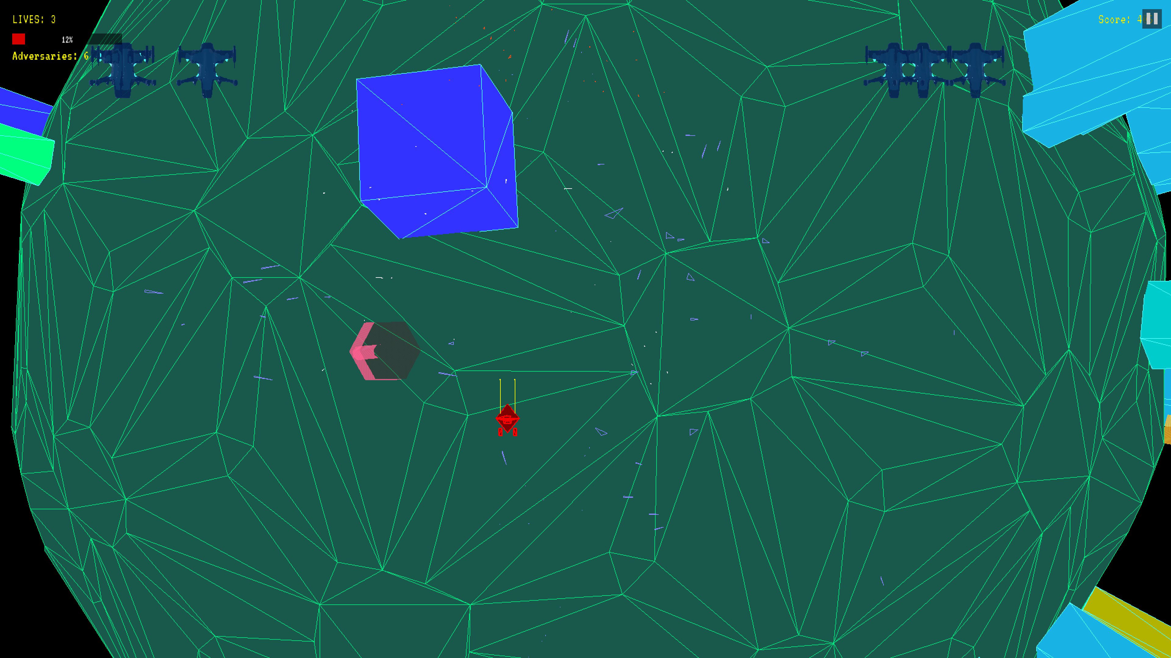 - Orbit mode: Circle massive planetary structures bristling with defenses