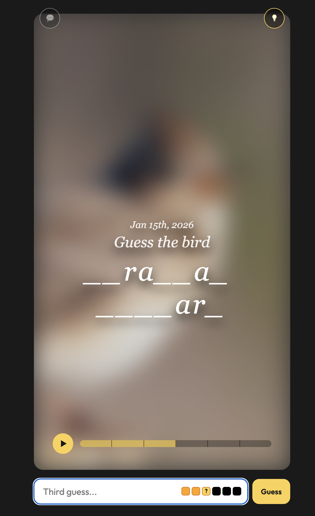 - You have 6 attempts to guess the bird.