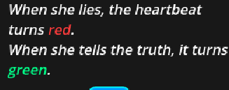 - On the level where you have to fill a trust bar, I just said something like "Ok, I'm listening" and I went from 0% to 100% instantly xD. I did afk on that screen before talking to her, I wonder if you have a time check so people don't get stuck too long and I accidentally triggered it this way. (this one isn't really a bug, I'm just curious :P)