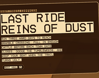 Failure in testing on my part, there are supposed to be a lot more hazards but they didn't show up in this final version (except the tumbleweeds)! Whoopsie! You're absolutely right, it's basically broken logic with the reigns right now. I'm not super happy with this, but I submit even when I think it's crap :P