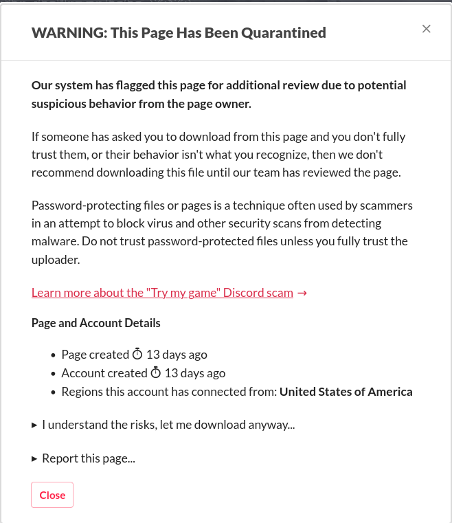 Putting a jam-game behind a paywall is generally unheard of, and not including proper screenshots whatsoever would seem like a major red flag to most people.
