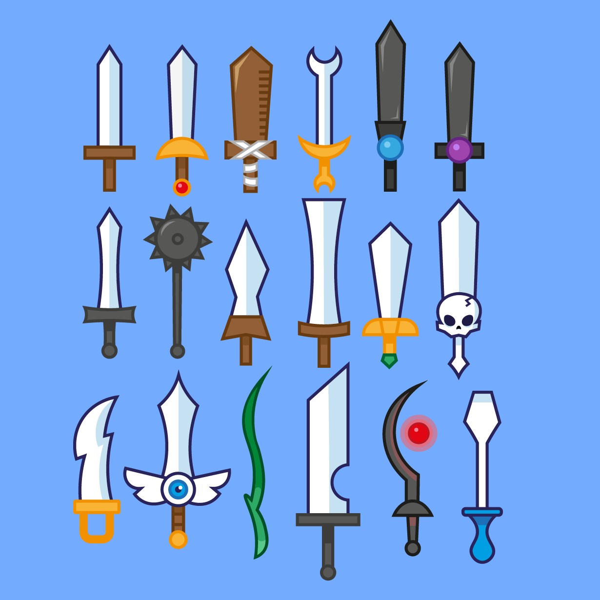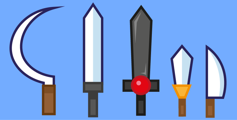 Vector Swords Asset - A small set with various types of swords and weapons. This set includes 28 different types of weapons. You can also make a donation if you like my game set. You can use this project for commercial and non-commercial purposes and edit asset.