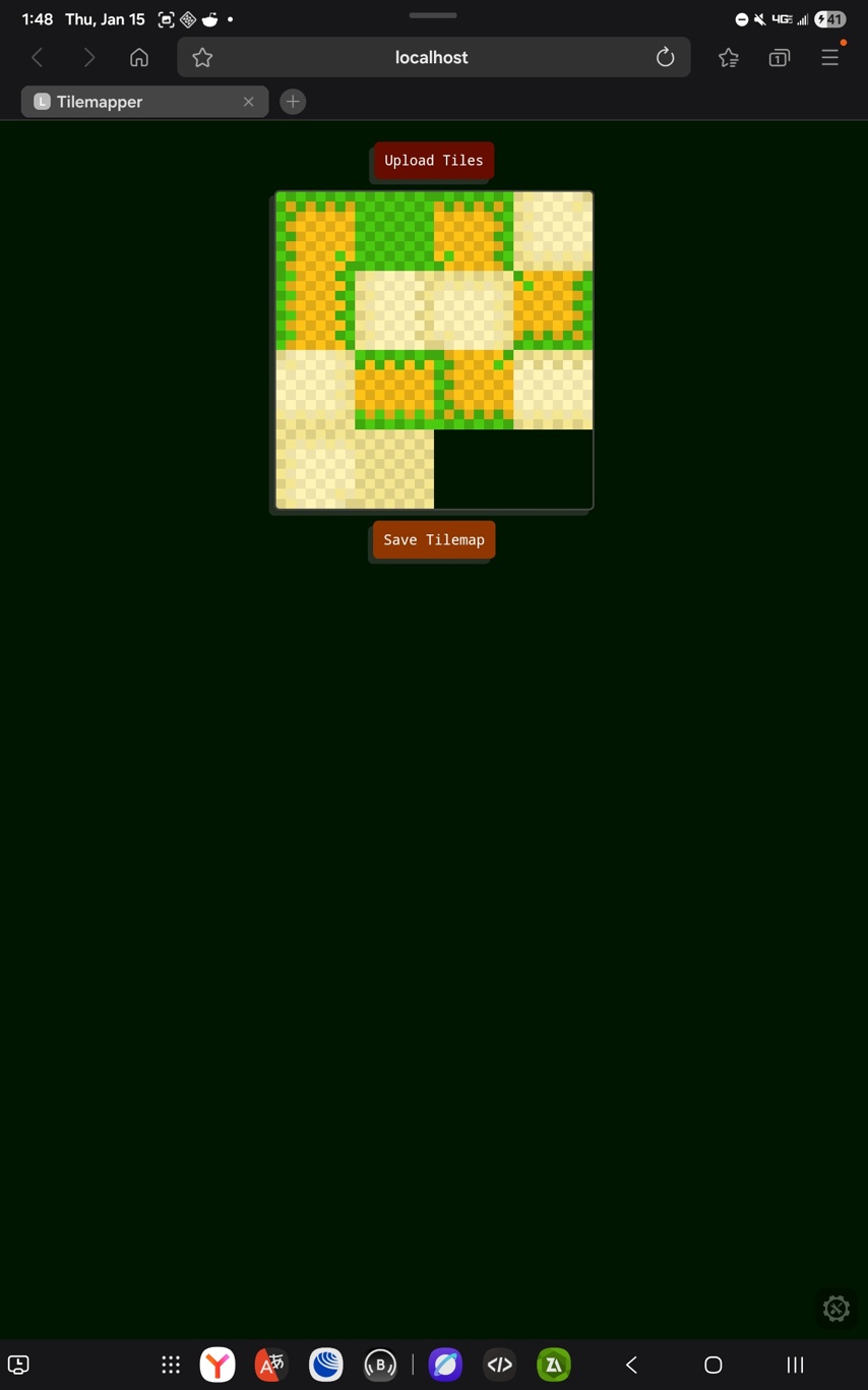 Click the 'Upload Tiles' button and select all single image tiles that you want to combine. Then, after loading the images, you will see a preview of your tilemap. Then, click the 'Save Tilemap' button to save your tilemap as a .png image!