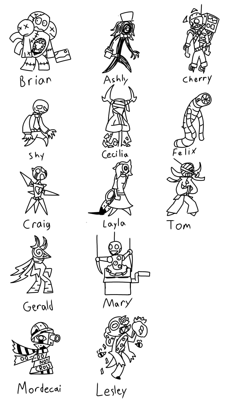 Since some people really like the character designs, here are their names and some unused onesDocSlayingyoudown