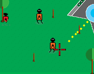Cool game, I would suggest that the health bar would be smaller and in more accessible spot, because this is an important aspect of the game. I would also suggest that enemies will shoot at you, only when you see them (So it would me more understandable from where I got hit). Glad you could participated! ;)