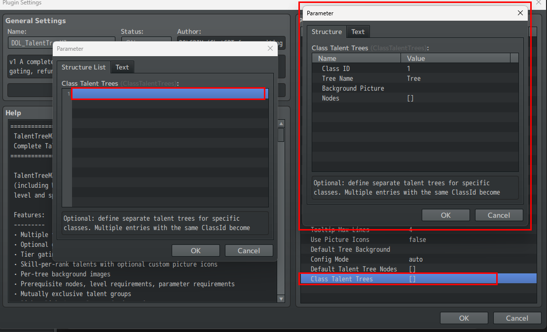 Ahh, my bad. I had forgotten to add something to the script :P Re-download the plugin and it should work now. You should be able to add talent trees for each class here now. Let me know if anything else happens :P