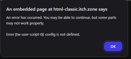 got this error message when opening the game after the new update, from a Fresh opening of the page.