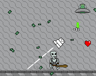 An arcade style game where you collect dollars and need to dropkick enemies.