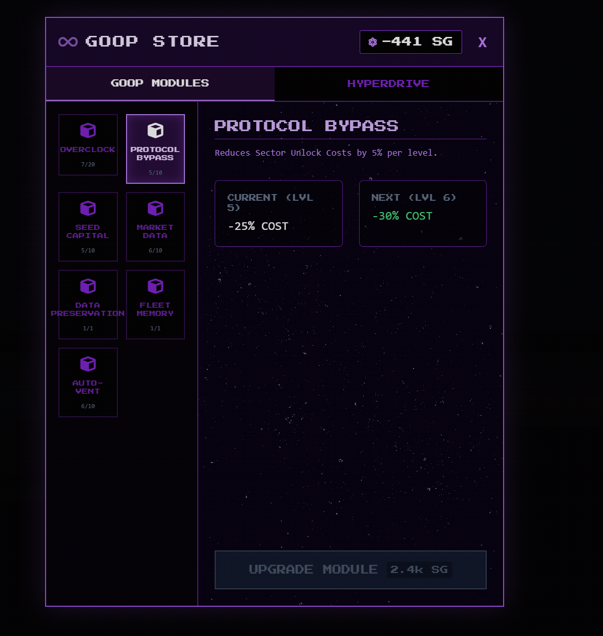 Maybe a capacity upgrade for scrap-overload, scrap-overload inventory and related upgrade tree. Ultimately an upgrade to auto-sell indefinitely. This could add tiers and progress for another semi-automatic element