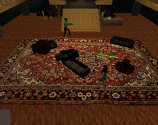 A speedrun shooter with a pawn travelling through various tabletop environments.