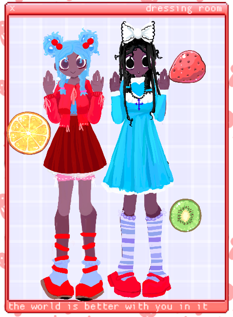 I swapped their colors so it looks like they are wearing each others clothes. Your art and ui are SO cute!
