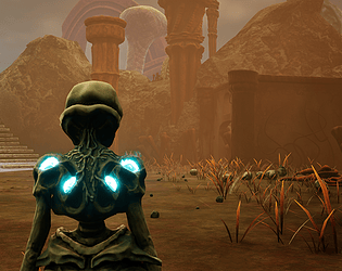 A contemplative game taking place in a world inspired by Zdzisław Beksiński's paintings
