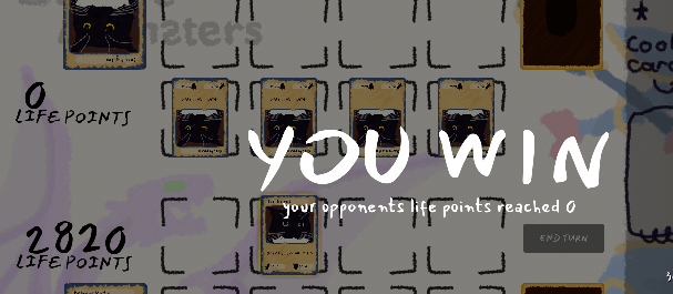 This is a really fun and creative game! I especially enjoyed the overall vibe and design. That said, I think it could benefit from a few extra UI elements to help differentiate the cards more clearly, something subtle like unique borders, icons, or even playful touches like little beards on the cats (which would be adorable!).