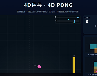 No, I mean it may be difficult as it's 4D and the players are not yet accustomed to the new control method, which uses 6 keys (WASD+QE). The 3D Beginner Mode (3D 新手模式) may be easier, as we are all accustomed to the WASD control method. Perhaps I should create a tutorial that transitions from classic pong to 3D and then to 4D in the next decade.