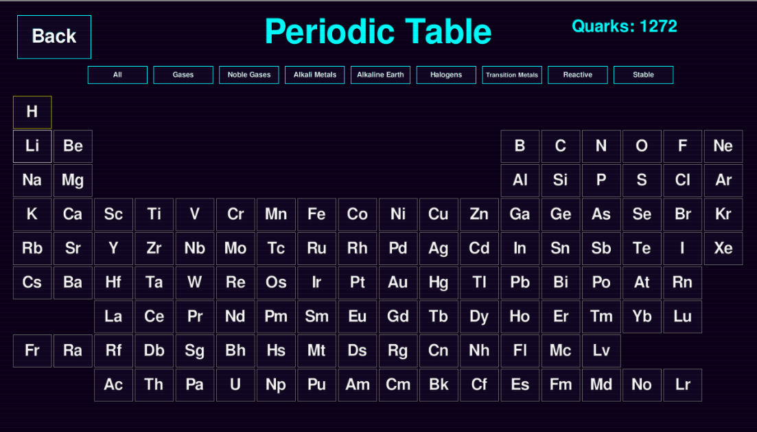Helium isn't appearing for me after unlocking atomic stability. I then used an autoclicker to unlock the rest of the elements, and helium is still missing. Also, the chart's layout is weird. Idek how this layout happened.