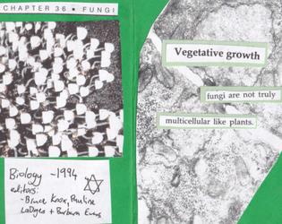 yes! sorry i should have prefaced it with the fact that it’s not super accurate and just selected quotes from the textbook but the mis-mash type zine was totally what i was going for! i don’t know that much about fungi either so it was interesting to start learning about them! also from my understanding (limited) because fungi spores are so diverse including using different carbon sources as nutrition, the sexual reproduction occurs via a switch from vegetative to reproductive growth - generally triggered by a hormone - and from what i can pick up, spores only have to be sexually compatible for sexual spores/sporulation to occur. also asexual reproduction is vastly preferred by fungi and there’s a vast variance between individual species when it comes to microscopic spores. i fear fungi aren’t normally my thing </3
