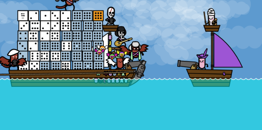 I think there were dice in the beginning but the parrots got most of it. Then I had my spy go into enemy cabin to sabotage what was left but when I returned there were no dice left