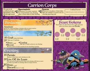 I feel like you could have given some more words to the schedule action as it's (by my understanding) a little strange and you have the extra space. I do wish the swarm was a bit less passive because you need outposts all across the board to score points, but opponents worried about about the swarm will have a better time stopping you from keeping any bait rather than letting you set up in a clearing.