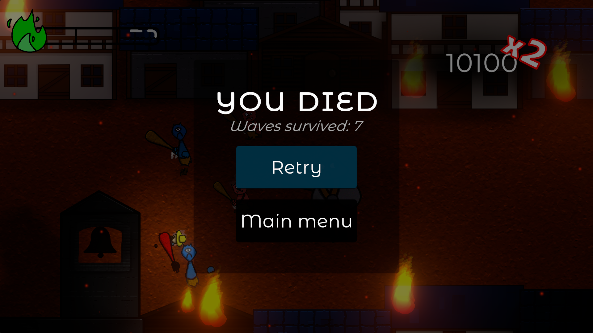 After playing it for a long time I never managed to get past round 7; it’s a shame because the big guy showed up and I couldn’t even see him in action before I died haha. A very original game—I like the opening story and the music is super catchy. The only things I’d improve are the difficulty and the variety of the enemies’ attacks. Some way to upgrade the character’s stats after dying would have made it feel worthwhile even when you lose. Even so, very good game; I had fun trying to beat my high score in every run :)