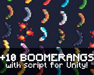 The download will be a .zip file called "+10 Pixel Art Boomerangs Pack Unity Assets", if you unzip this file there will be 3 files, two folders (one with the boomerangs and the other with a Unity project that contains the scripts) and a .txt file called "README" that has the instructions to set the pack up. If you don't click in that option the download file will just have boomerangs.