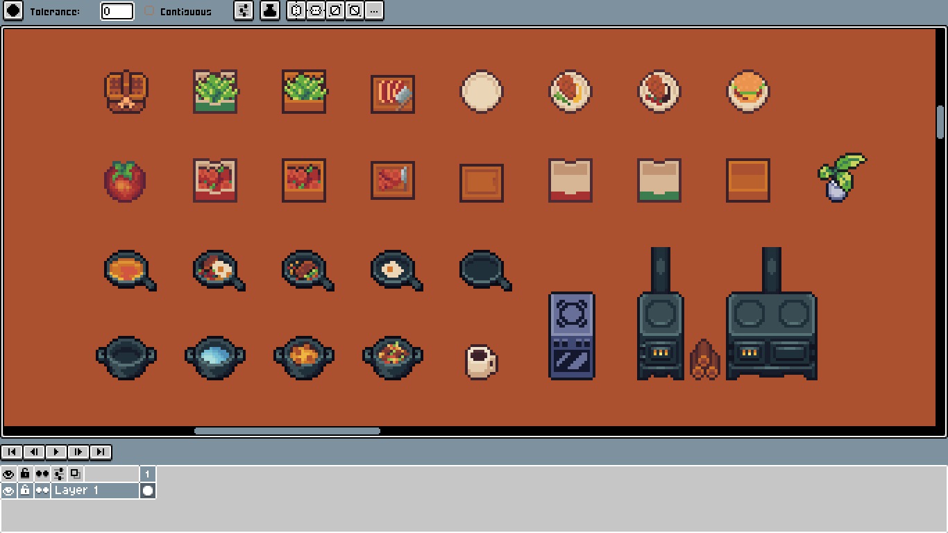 Could you help me? I’m preparing a package of pixel art graphic assets. I’ve been working on it for some time, but I’m currently experiencing a creative block. What do you think of the assets I’ve produced so far, and what do you think is missing? It’s a kitchen asset pack—what would you like to see included to make it worth buying? I really appreciate the help of everyone who can contribute with their opinions.