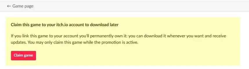 After buying the game, you would need to "Claim the Game" to link the purchase to your itch-io account.