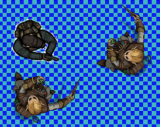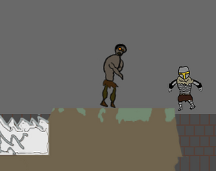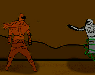 Un personaje sin nombre pelea contra enemigos con su gancho y armas.