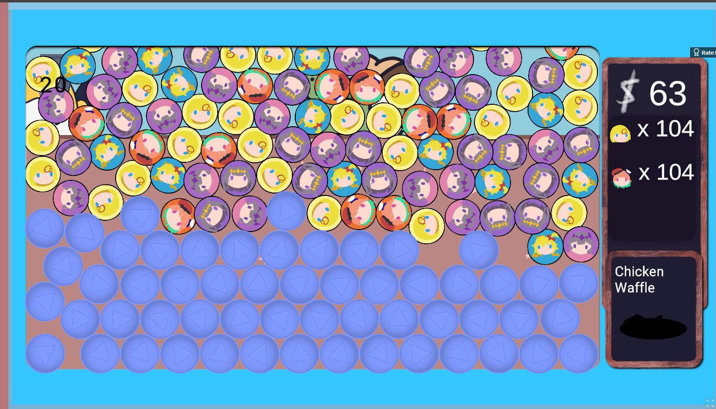 Been enjoying this game on and off in the background while I work, been keeping it open in a tab, and I've been having fun! My current game, it isn't finished yet, but something about the absurdity of having that many power spheres at the same time is very funny to me. Its a fun little game and I think you did a great job!