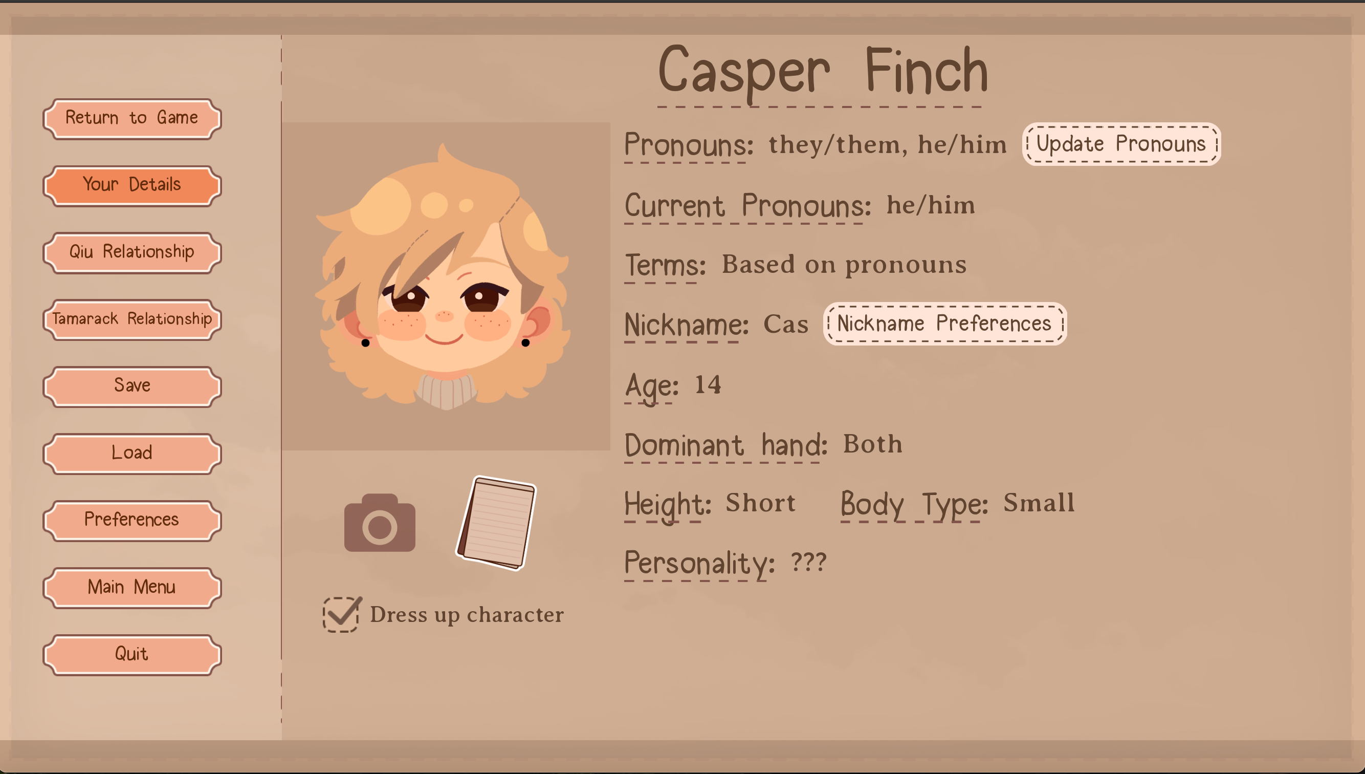 since the demo update came out, I made a new MC!! Their name is Cas ^^