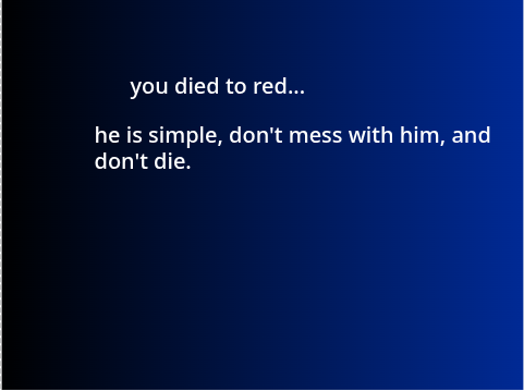 ???:The night is nigh.you cannot hide, the monsters have different eyes, that's how you learn about them.take the advice on the pages.DON'T TRUST ANYTHING OTHER THAN THOSE PAPERS.so long.let's hope you survive next time.