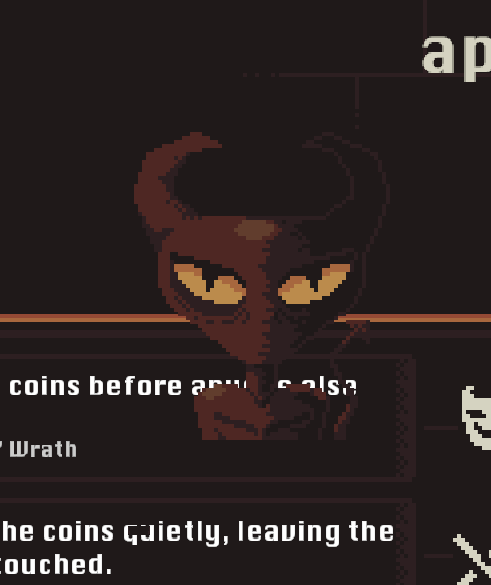 The gameplay itself wasn't very engaging, as i didn't really feel the weight of my choices. An idea may be to have some text or the like that show how the choices changes you, apart from just the meters at the top.