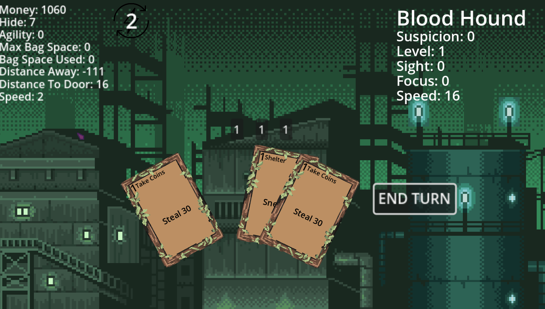 The aesthetic seems cool, congrats on the entry. But tbh I'm not exactly sure what to do in the game. It would be helpful to have a tutorial, even if it's just in the game's description. While playing, I was a bit confused: I used all my cards, but they reappeared in my hand when I ended my turn. The game then let me play the same cards over and over again. I don't know if this is a bug. I read that the goal is to reach 500 dollars, but I currently have over 1000 and nothing happens.