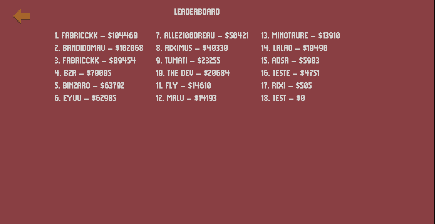 Thanks, you fueled my internal gambling addiction. This game is super super fun to play, and I really like the speed progression. The leaderboard is a great addition to the game! I fought tooth and nail to be the first, haha! The only thing I noticed in the game is that the civilians appear in a rhythm when the speed is high. Amazing work, congrats on the entry!