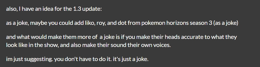 as a joke, maybe you could add liko, roy, and dot from pokemon horizons season 3 (as a joke)