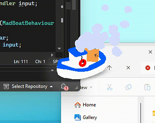 CursorBoat - is a project I made in just one day that lets you add a cute little fishing boat to your desktop! As soon as you press the LMB, it will follow your cursor. Play around, interact with the apps below, and enjoy your new companion!