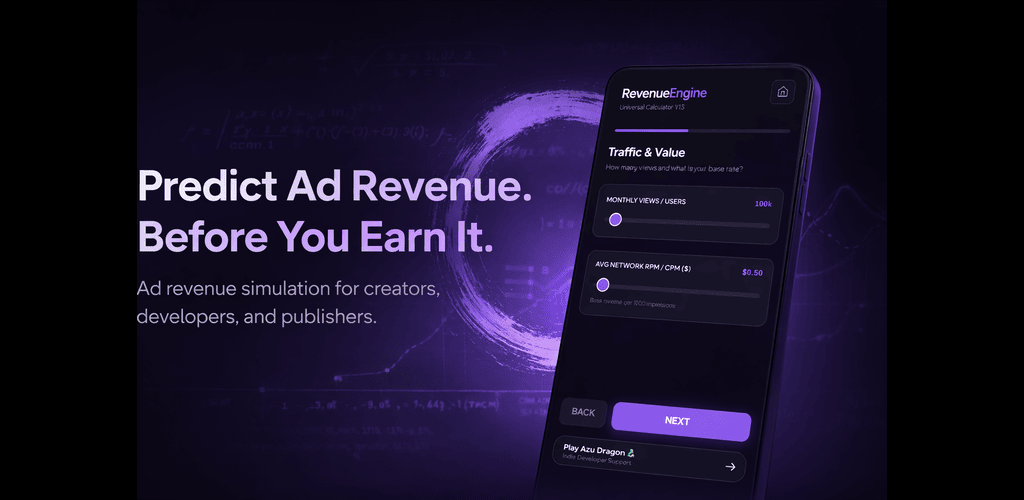 Whether you’re experimenting with a YouTube channel, a mobile app using AdMob, or a website running ads, AdZen helps you understand potential earnings before you commit time or resources. The goal isn’t hype or “get rich” promises, just realistic insight and better planning.