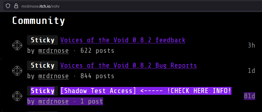 "Voices Of The Void" Pre-Alpha community · Replied to SevenGrainsOfSand in how in the helly do i get 0.9