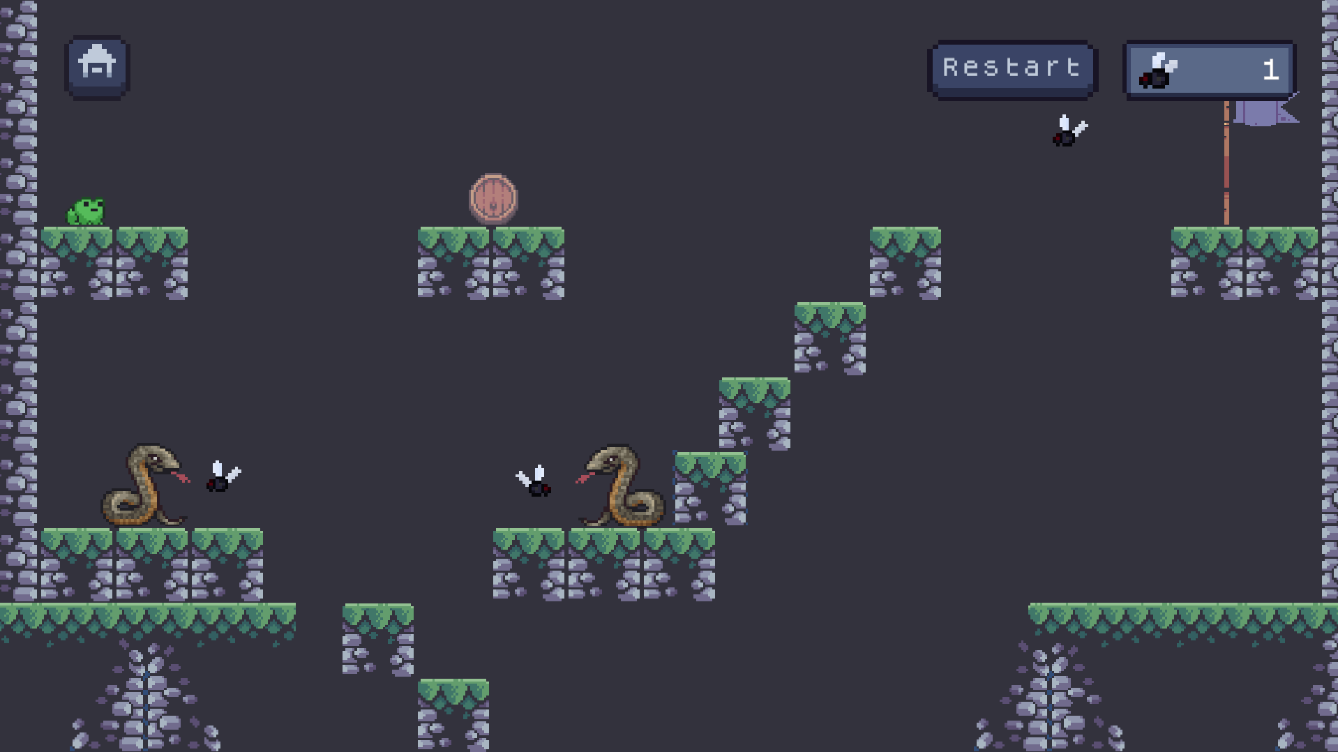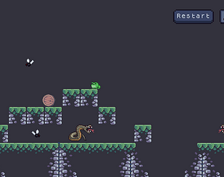 Colete as moscas, utilize o construtor para passar nos obstáculos mais díficeis. Os barris no mapa também podem ser empurrados em cima das cobras.
