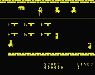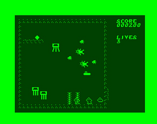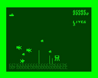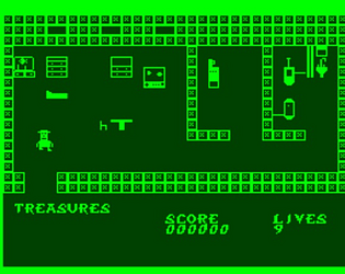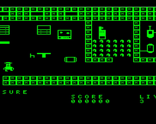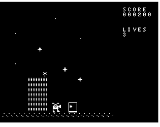 Third game about Jerry's travels for vz200 computers. After saving alien Erick and robot Gerald Jerry visited planet Zarg to save another alien Chad. This is simple platformer with over 30 rooms. Different versions of game have different endings.
