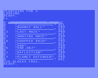 The classic Light Cycles game for Commodore VIC-20 computer. For one or two players.